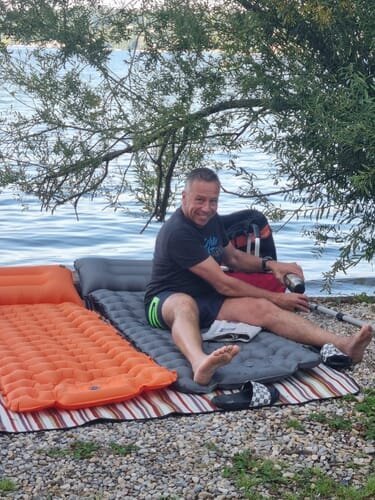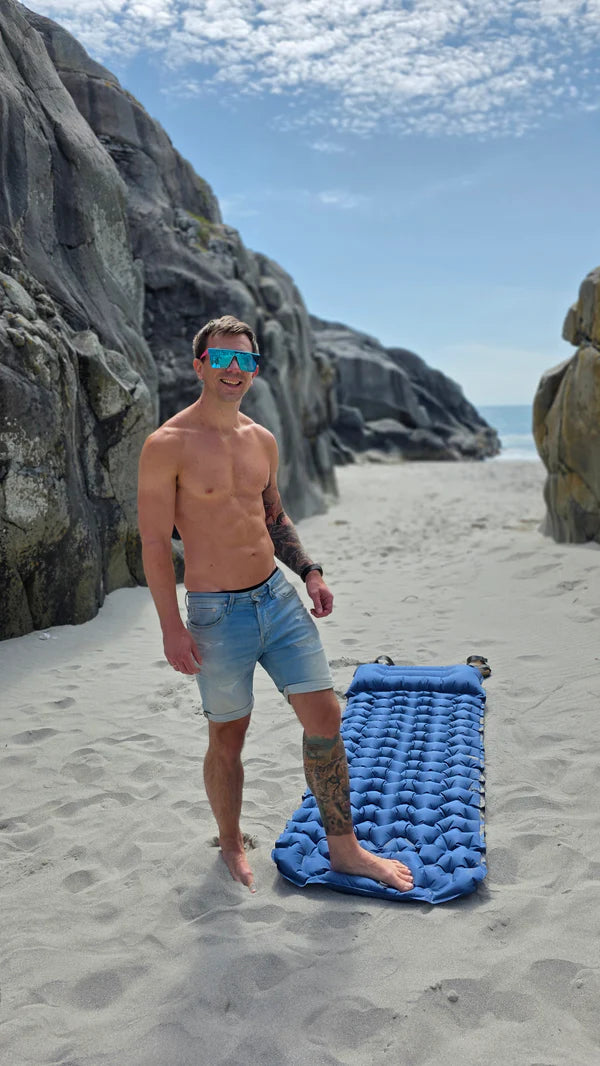 Yes. When inflated, the mat is approx. 8 cm thick and offers high comfort even on hard or uneven surfaces. It is perfect for camping, beach days, or as an extra sleeping option at home or in a cabin.